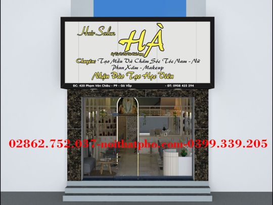Mẫu thiết kế Salon-Hair-Hà là mẫu thiết kế mới nhất của CƯỜNG VIỆT với thiết kế theo hơi hướng Á Âu, một nữa theo phong cách hiện đại giới trẻ Châu Âu, một nữa nghiêng về truyền thống Việt Nam. Với tiêu chí chất lượng được đặt lên hàng đầu và màu sắc, kiểu dáng theo yêu cầu khách hàng thì không có gì làm khó được chúng tôi.